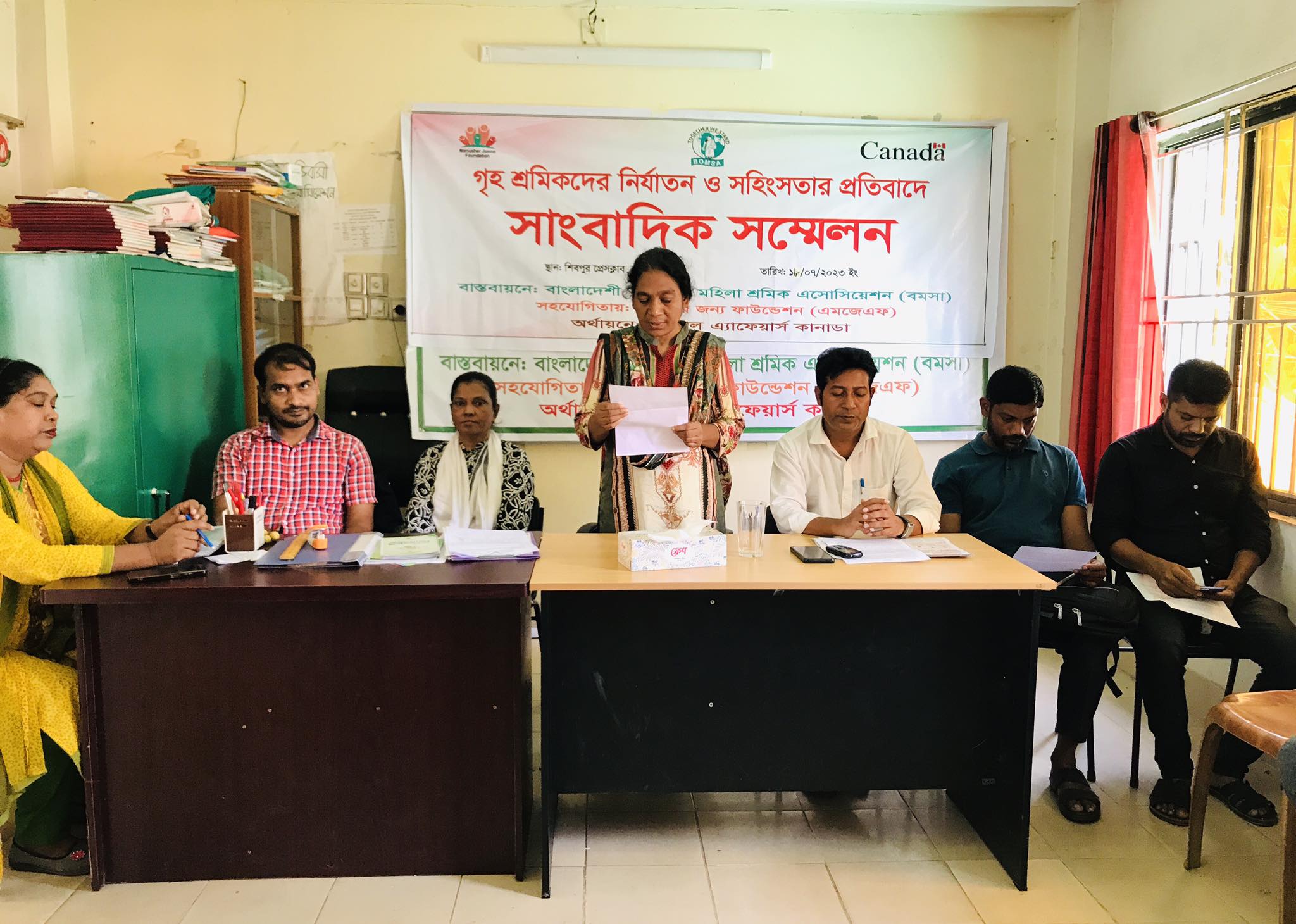 নরসিংদীর শিবপুরে অভিবাসী গৃহ শ্রমিকদের নির্যাতন ও সহিংসতার প্রতিবাদে সাংবাদিক সম্মেলন করেছে বাংলাদশী অভিবাসী মহিলা শ্রমিক এসোসিয়েশন (বমসা)।
