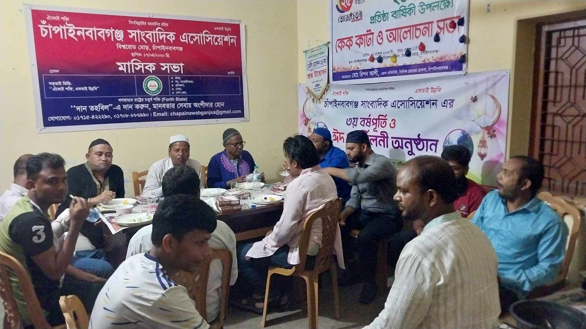 চাঁপাইনবাবগঞ্জ সাংবাদিক এসোসিয়েশনের মাসিক সভা, ইফতার ও দোয়া মাহফিল অনুষ্ঠিত হয়েছে। আজ ৩১ মার্চ রবিবার সন্ধ্যায় জেলার বিশ্বরোড মোড়সংলগ্ন চাঁপাইনবাবগঞ্জ সাংবাদিক এসোসিয়েশন অডিটোরিয়ামে মাসিক সভা ইফতার ও দোয়া মাহফিল অনুষ্ঠিত হয়।