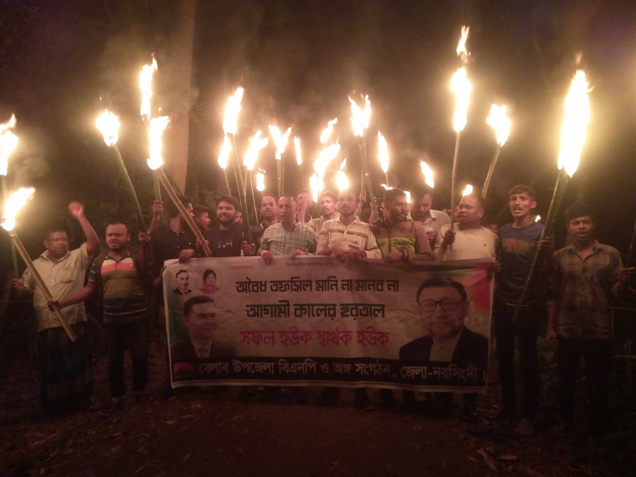 গকতকাল শনিবার (১৮ নভেম্বর) রাতে নরসিংদী জেলা বিএনপির আহবায়ক সাবেক সংসদ সদস্য এডভোকেট সরদার সাখাওয়াত হোসেন বকুলের সমর্থকরা উপজেলার বেলাব-শিবপুর সংলগ্ন সড়কে মশাল মিছিল বের করেন।