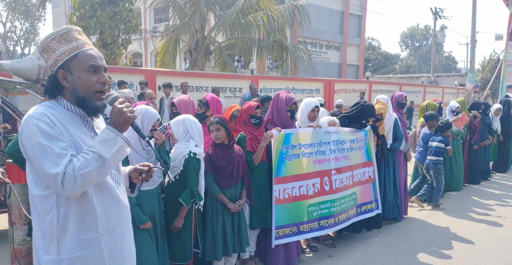 নান্দাইলে মাদ্রাসার নিয়োগ বানিজ্যে জড়িতদের শাস্তির দাবিতে মানববন্ধন