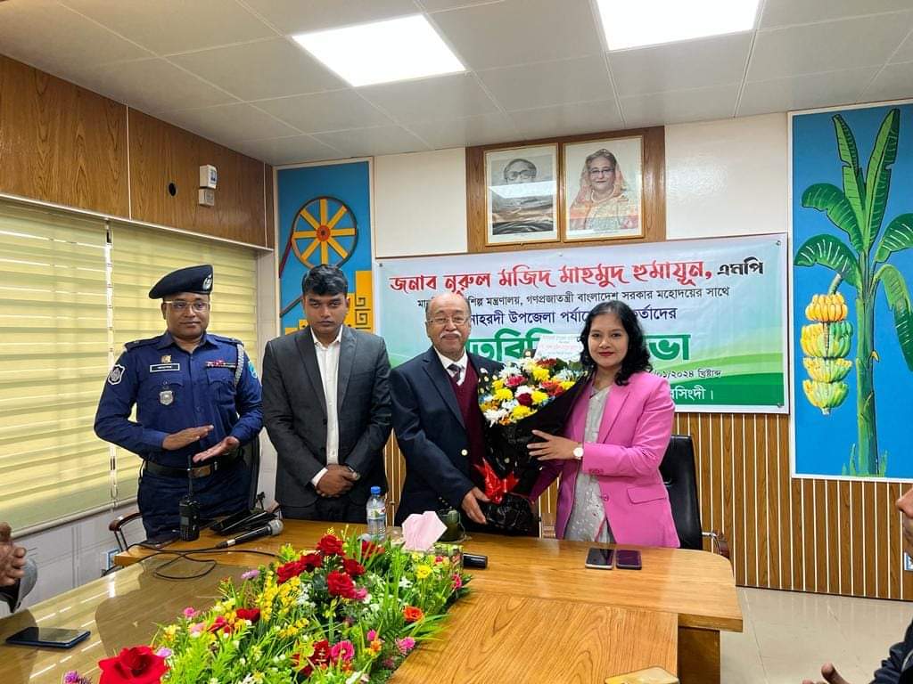 সভার শুরুতে দ্বিতীয়বারের মতো শিল্পমন্ত্রীর দায়িত্ব পাওয়ায় অ্যাডভোকেট নূরুল মজিদ মাহমুদ হুমায়ূনকে ফুল দিয়ে বরণ করেন উপজেলা নির্বাহী কর্মকর্তা (ইউএনও) হাসিবা খানসহ উপজেলা প্রশাসনের কর্মকর্তারা।