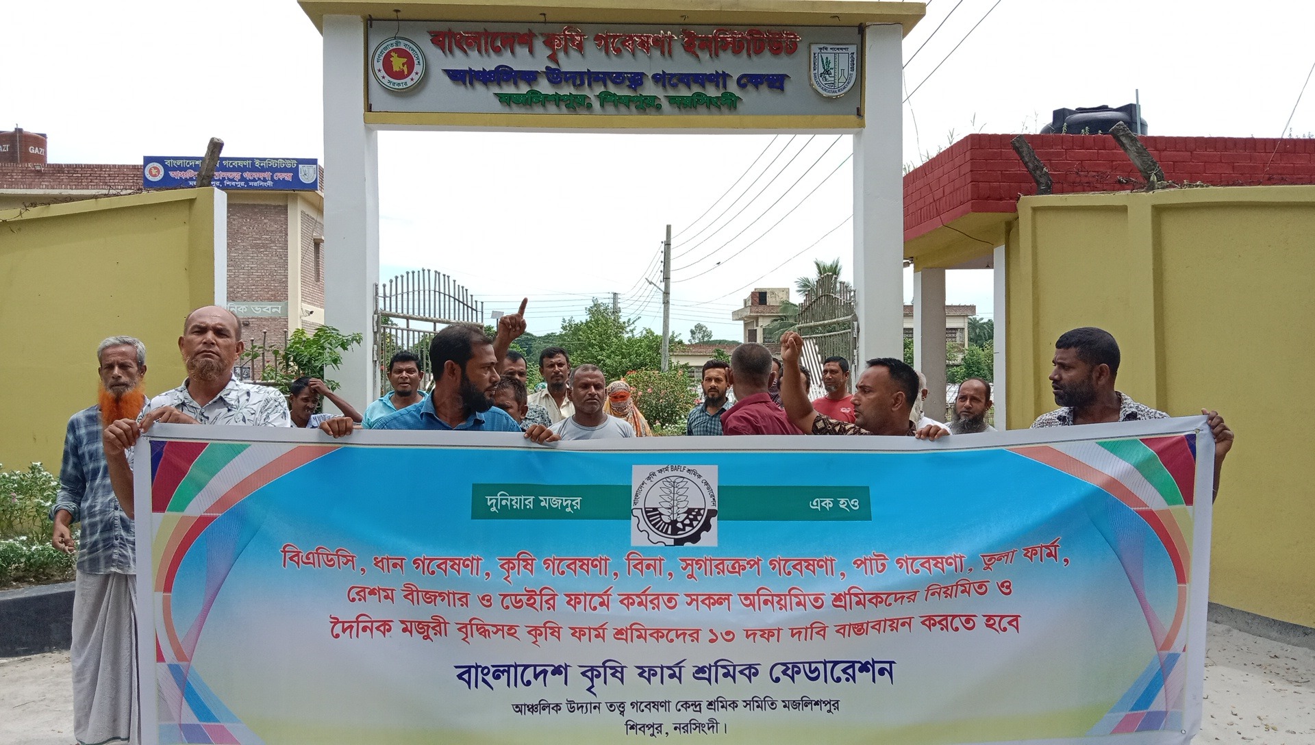 শিবপুরে কৃষি ফার্ম শ্রমিকদের ১৩ দফা দাবি বাস্তবায়নে ১০দিনের কর্মসূচী